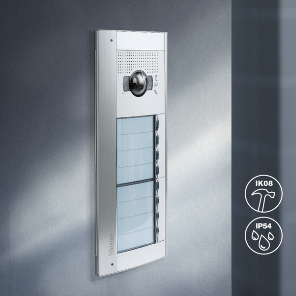 Linea 350 ist eine robuste Türstation aus gebürstetem Edelstahl für das Mehrfamilienhaus. Sie wird mit dem 2-Draht Einbaulautsprecher ergänzt und ist dadurch voll kompatibel mit dem bewährten 2-Draht-Bussystem. Sie besitzt eine Schlagfestigkeit von IK08 und ist strahlwassergeschützt (IP 54).